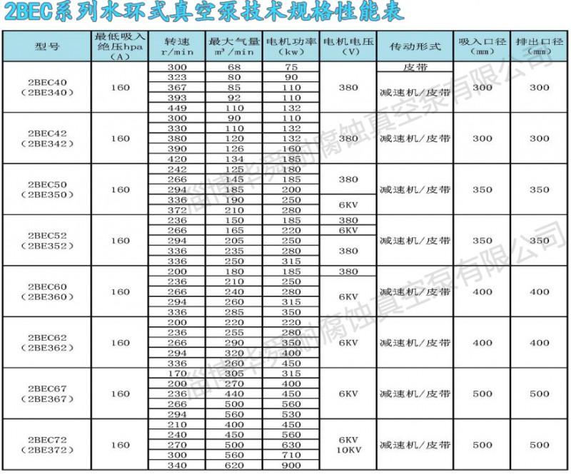 2BE系列水環(huán)真空系及壓縮機,是我公司在多年科研成果和生產(chǎn)經(jīng)驗的基礎(chǔ)上,結(jié)合國際同類產(chǎn)品先進(jìn)技術(shù),研制開發(fā)的高效節(jié)能產(chǎn)品,通常用于抽吸不含固體顆粒,不溶于水,無腐蝕性的氣體,以便在密閉容器中形成真空和壓力。通過改變結(jié)構(gòu)材料,亦可用于抽吸腐蝕氣體或腐蝕性液體做工作液。廣泛用于造紙、化工、石化、輕工、制藥、食品、冶金、建材、電韻、煤暖、金屬礦山、化等行業(yè)。本系列泵采用單級單作用的結(jié)構(gòu)形式,具有結(jié)構(gòu)簡單,維修方便,運行可,高效節(jié)能的優(yōu)點,并能適應(yīng)排水量大,載荷沖擊波動等惡劣工況。我們對關(guān)鍵部件,如分配板,葉輪和系軸進(jìn)行了系列優(yōu)化設(shè)計,簡化了結(jié)構(gòu),提高了性能,實現(xiàn)節(jié)能。采用球墨鑄鐵或焊接葉輪,葉片一次沖壓成形,型線合理:輪轂全部加工,從根本上解決了動平衡問題。葉輪與系軸采用熱裝過盈配合,性能可靠,運行平穩(wěn)。葉輪焊接后,整體進(jìn)行熱處理,使葉片具有良好的韌性,葉片的抗沖擊,抗折彎能力得以根本保證,能適應(yīng)載荷沖擊波動等惡劣工況。2BE系列泵,自帶氣水分離器,多位置設(shè)有排氣口,泵設(shè)有排氣檢修口,葉輪與分配板間通過定位軸承兩娉壓益調(diào)整,安裝使用方便,操作簡單,便于維修。