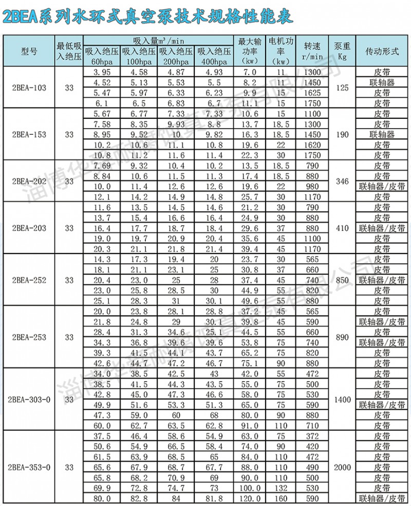 1、上列性能數(shù)據(jù)基于進(jìn)氣溫度20%,進(jìn)水溫度15℃,排氣壓力1013hpa,吸入介質(zhì)為飽和空氣的條件。