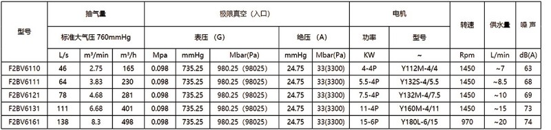 2.上列性能基于進(jìn)氣溫度20℃,進(jìn)水溫度15℃,排氣壓力1013hpa的條件,被吸入氣體為飽和空氣。(飽和空氣是指在對應(yīng)吸入狀態(tài)下,其相對濕度為100%的濕空氣。)3.抽氣速率、軸功率性能允差10%。