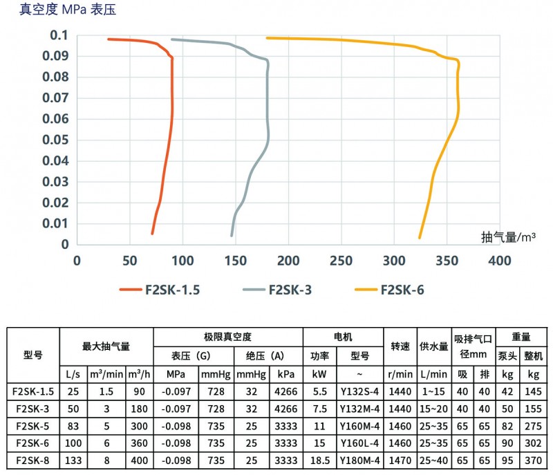 F2SK系列與FSK系列設(shè)計(jì)類似,同樣采用了徑向葉輪,它特點(diǎn)是增加了一個(gè)副葉輪,可以將真空度由-0.093提升到-0.098MPa。